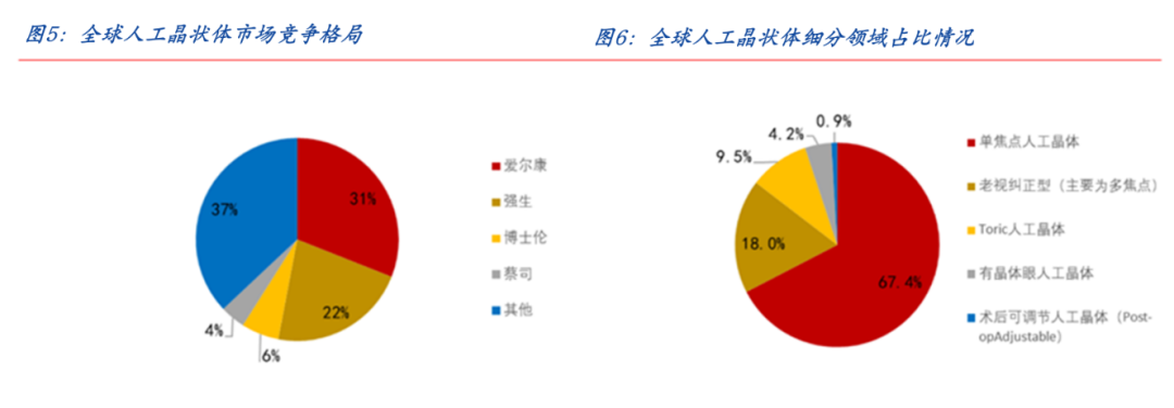 国内市场中,高端人工晶状体由外资企业主导,代表品牌有爱尔康、强生等;中端人工晶状体梯队由内外资企业共同组成,代表品牌有爱博诺德、卡尔蔡司等;低端人工晶状体主要是国产品牌,代表企业有爱锐、蕾明视康等。