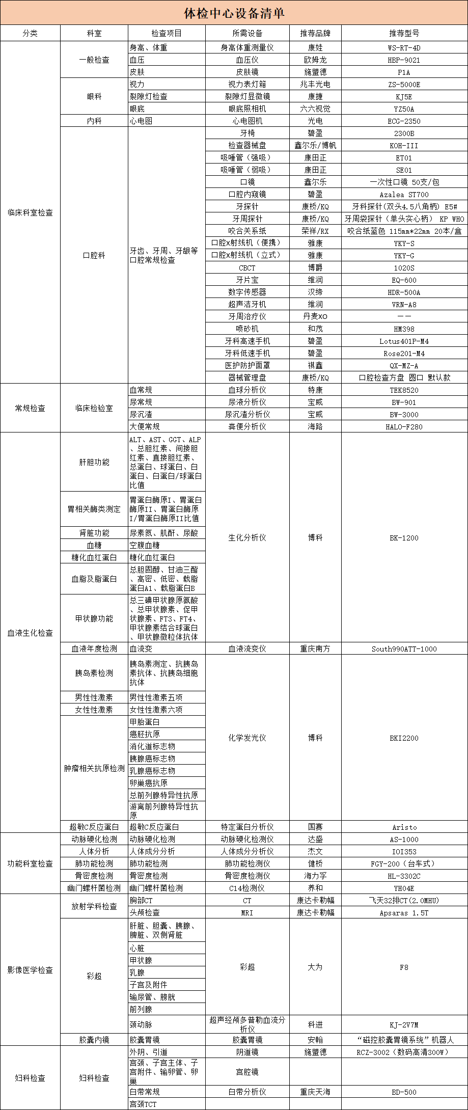 体检中心设备清单